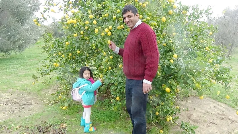 Ci-dessous, Ziad MEDOUKH propose son aide aux agriculteurs pour cultiver des citrons à Gaza, Source Ziad Medoukh